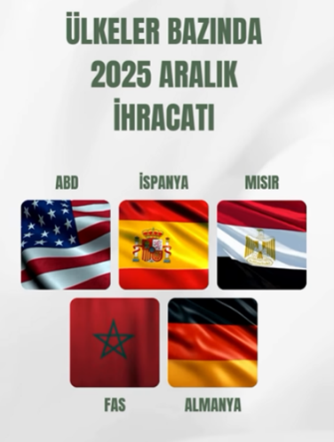 Tekstil ve hammaddeleri sektöründe Aralık ayında en fazla ihracat yapılan ülkeler ABD, Mısır, İspanya, Almanya ve Fas olurken; sektörel ihracatta dokuma kumaşlar, suni–sentetik iplikler, örme kumaşlar, dokunmamış kumaşlar (nonwoven) ve pamuk ipliği öne çıktı. Uludağ Tekstil İhracatçıları Birliği’nin (UTİB) ihracat görünümüne göre ise Ocak–Aralık döneminde ihracatta ürün grupları bazındaki liderlik değişmezken, en fazla ihracat gerçekleştirilen ülkeler İspanya, ABD, Mısır, Fas ve Almanya olarak sıralandı.
